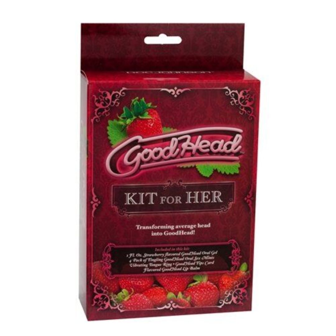 The Good Head Kit for Him is for penis owners and provides all the essential blow job tools! Flavored GoodHead lip balm will keep your lips soft and ready. Delicious cool Mint Good Head gel tastes so good you won't ever want to come up for air. Pop one of the oral sex tingling mints in your mouth and unleash a tingling frenzy. Slip on the one-size-fits-all disposable vibrating love ring onto their penis or over your palm and watch your partner light up with joy!