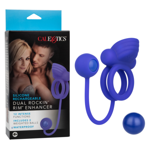 Cock rings go around the penis and/or scrotum, and their main function is to restrict blood flow to the penis, thus prolonging and strengthening erections. There are many different types of cock rings. There are ones that vibrate and ones that stimulate the clitoris of your partner and all are made from unique materials and textures. Our current best seller, Silicone Rechargeable Dual Rocking Rim Enhancer has a contoured ridged teaser, dual enhancer ring, and two interchangeable weights, meant to thrill with every swing and tug.