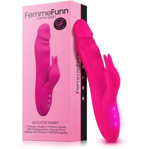 The Booster Rabbit pairs innovative 360º rotation technology with sensational rabbit vibrations for ultimate dual-action stimulation. Use the 7 external vibration modes, 3 internal rotation speeds, and the super-charged boost mode to rock you or a partner’s world! Soft silicone rabbit ears gently stimulate external pleasure zones. Enjoy the ultimate combination of internal and external stimulation for blended orgasms. Build up intensity with the 3 rotation speeds and super-charge your session with the boost button.